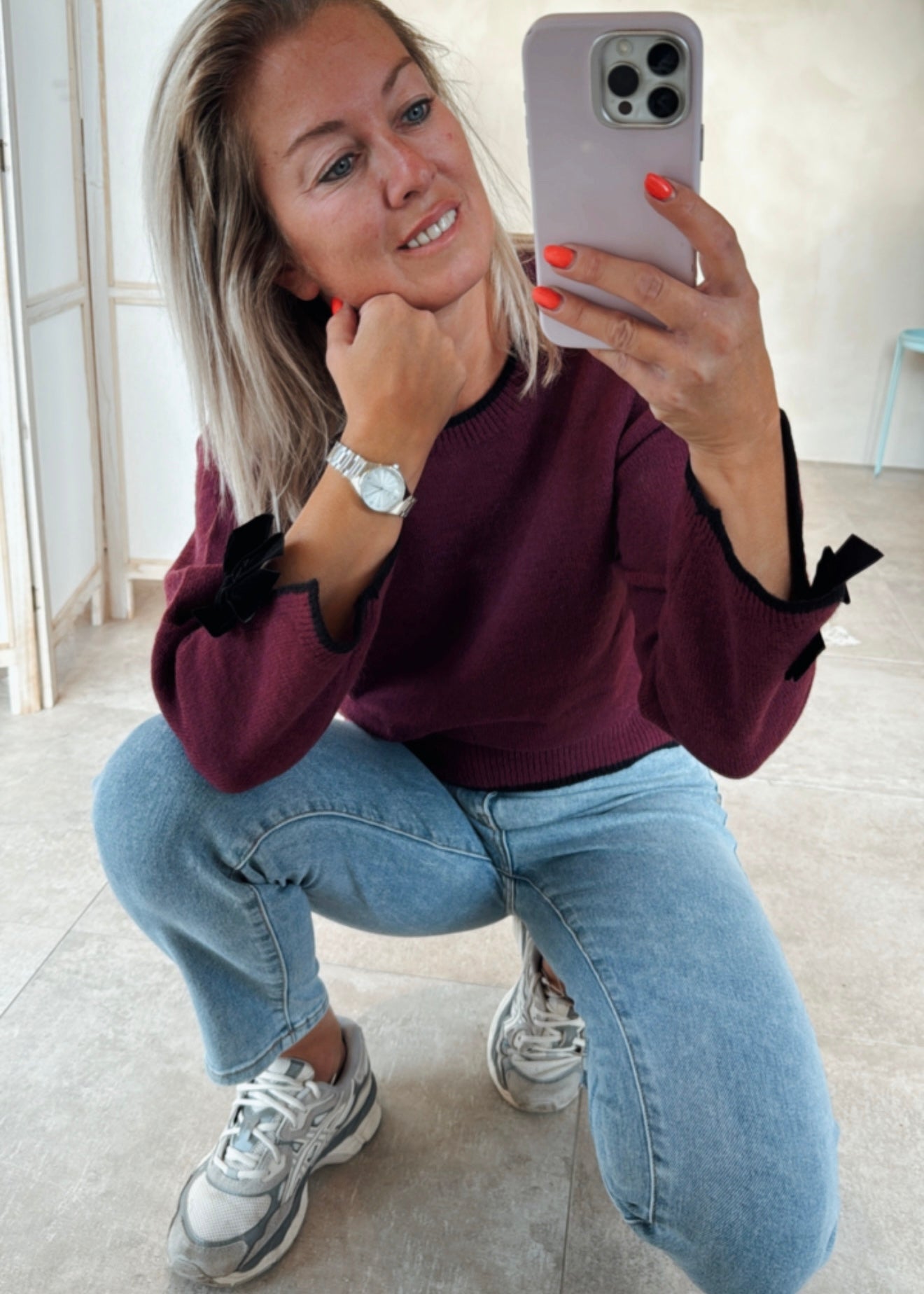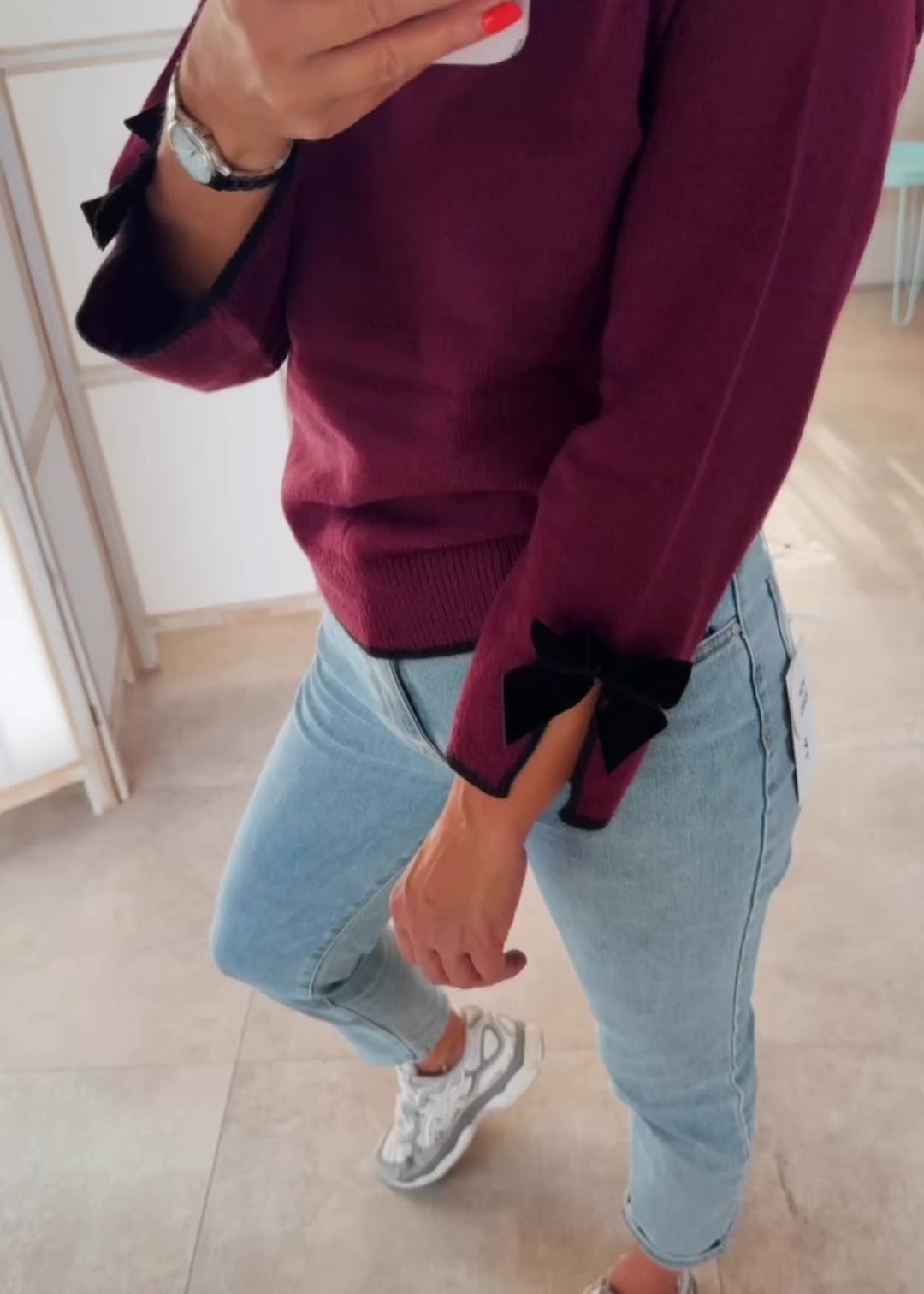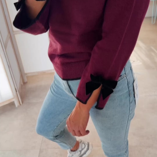 ✨ “Stijlvol in eenvoud – dit bordeaux truitje met subtiele strikdetails geeft elke casual outfit een vrouwelijke touch. Comfortabel, tijdloos en toch speels.” ✨