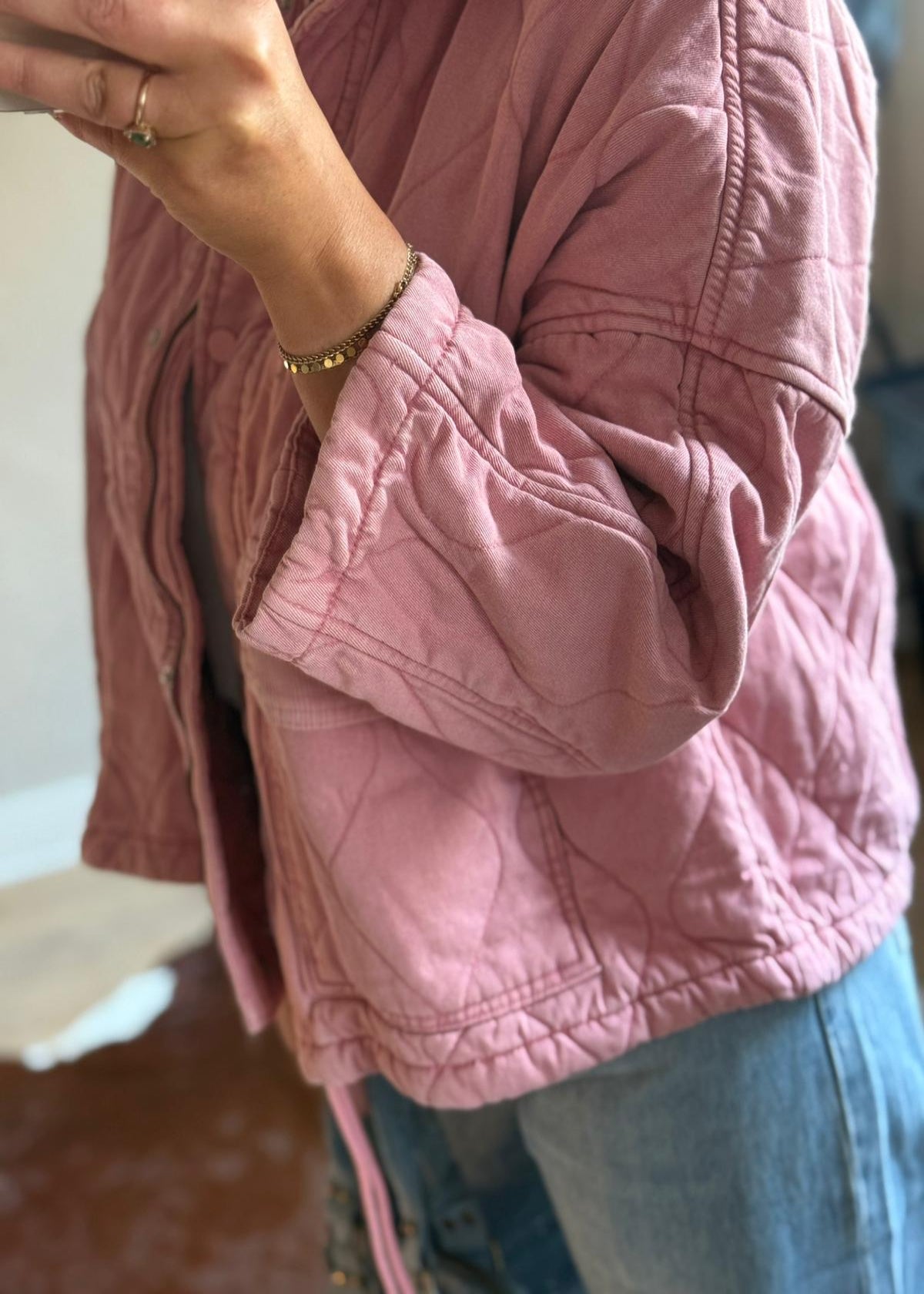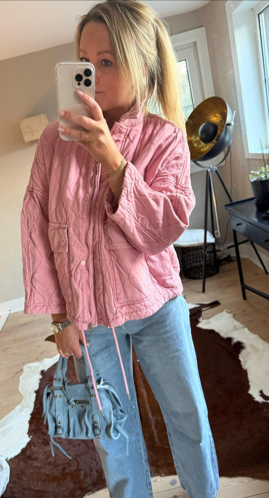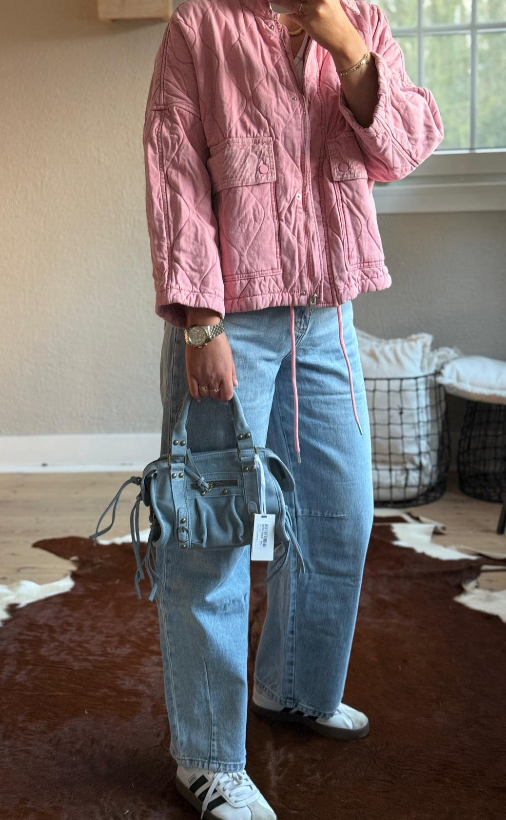 Beschikbaar in roze, kaki en bruin.
